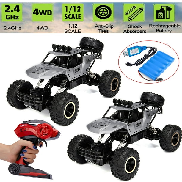 2 4g Radio Remote Control Monster Truck With Lights All Terrain Remote Control Rock Crawler Monster Truck 4wd Driving Off Road Vehicle For Children Toy Gift 1 6 Scale Rc Cars 2pcs Walmart Com
